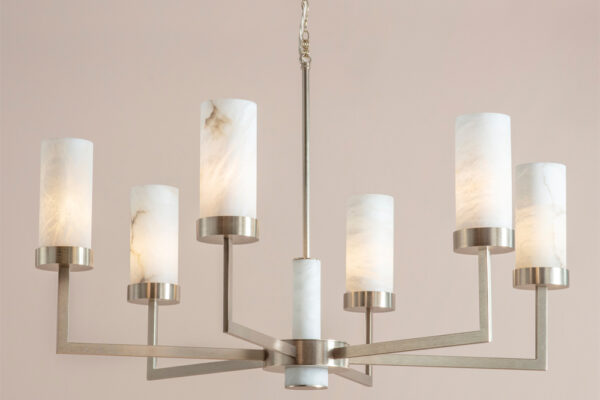 Compass Chandelier in Gold with Alabaster – Square – LOW RES