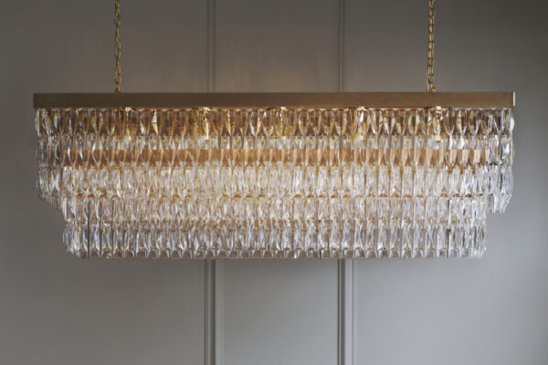 Clear Crystal Rectangular Chandelier w Gold