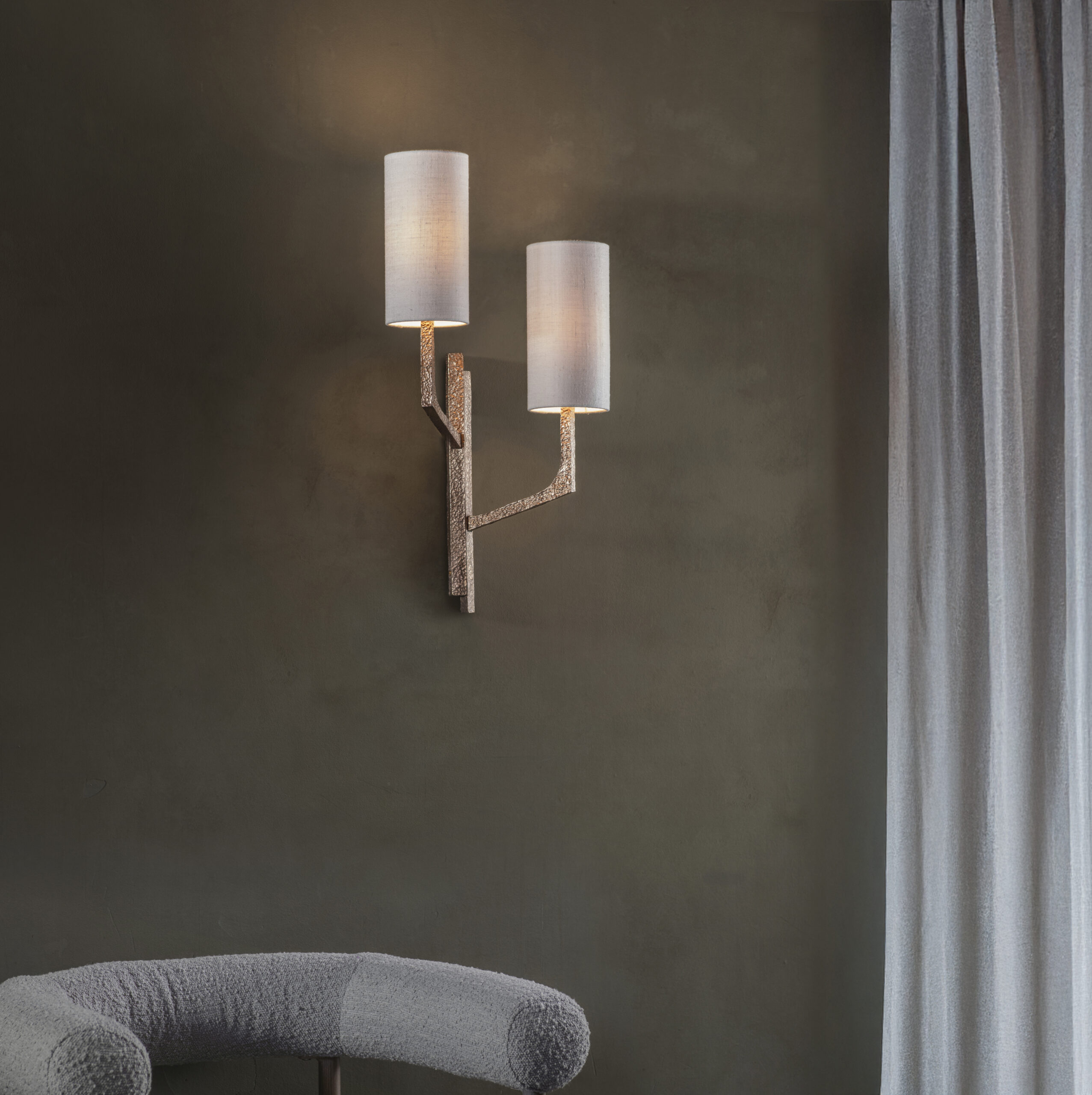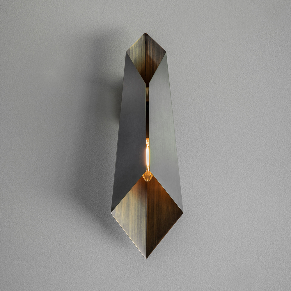 A Folded Brass Wall Light, patinated to a dark bronze colour and hand-grained on the inside surface to reveal the brass underneath and reflect the light.