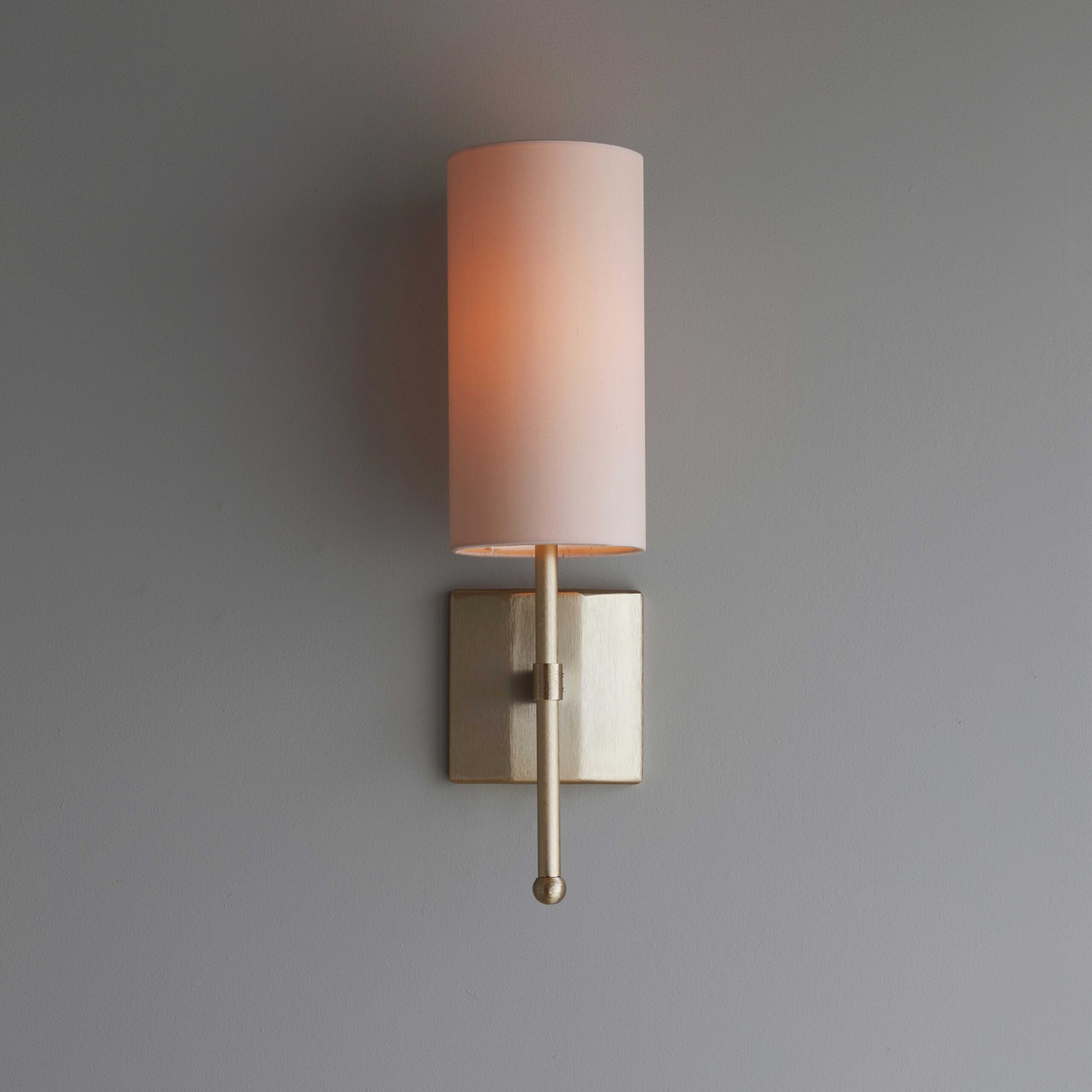 An elegant Wall Light featuring shades hewn from solid alabaster. The soft opalescent alabaster shade is offset by the clean contemporary lines of the hand-grained metalwork. When lit, the alabaster shade offers a stunning diffused light and displays a fascinating natural marbled texture.
