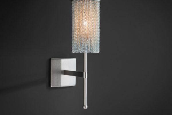 Reduced Depth Single Stem Wall Light in Flat Nickel wih Silver Chain